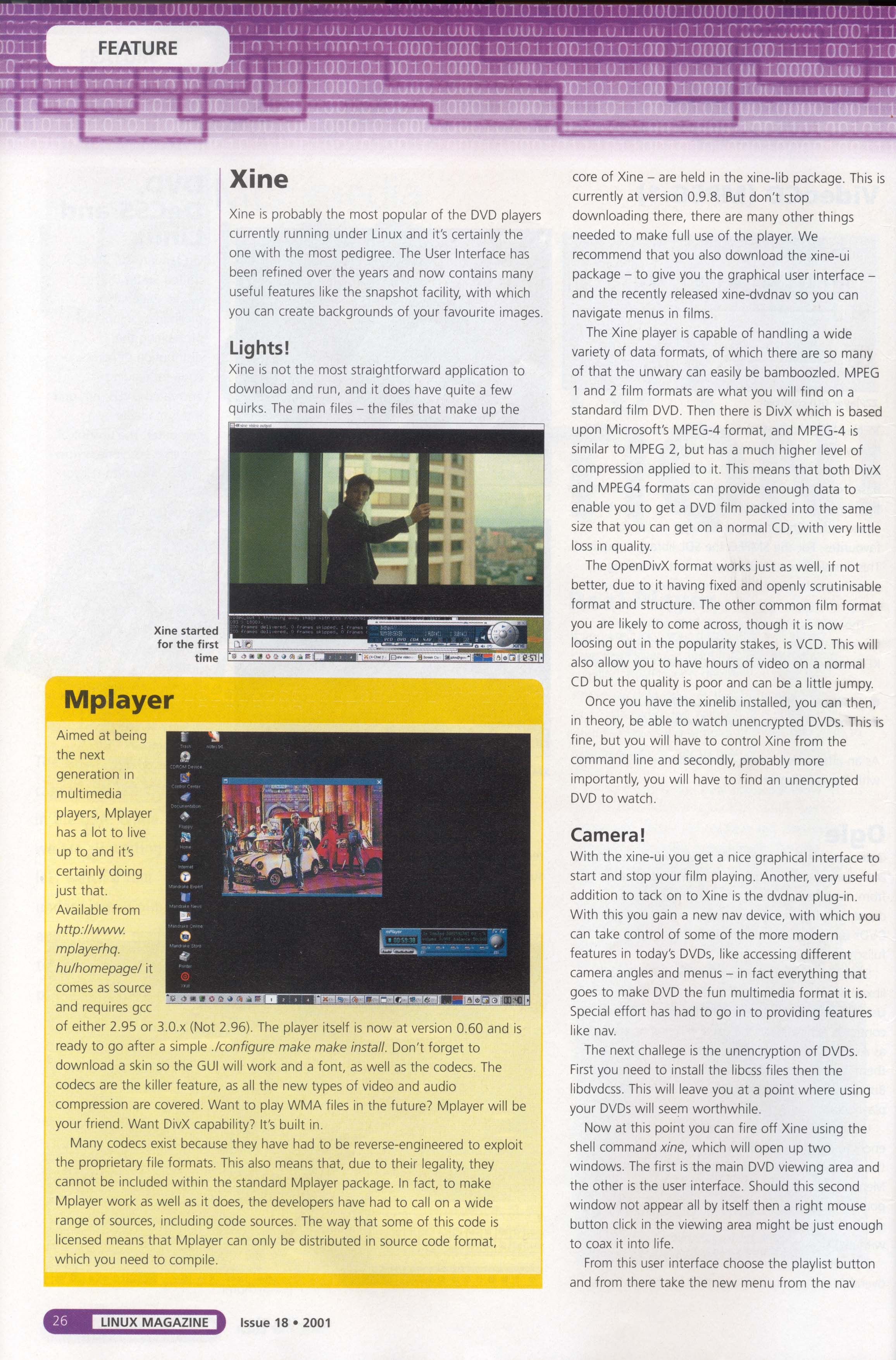 2001 English Linux Magazine Article about xine, with MPlayer as a side-note
