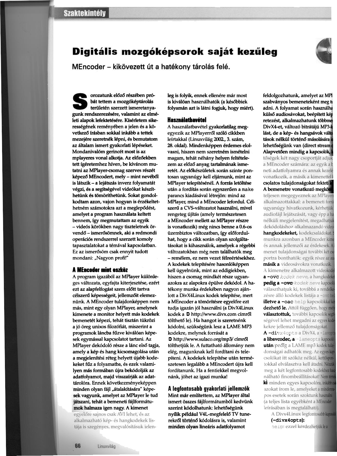 2002/05 Hungarian Linuxvilag Article about MEncoder (page 1, 2)