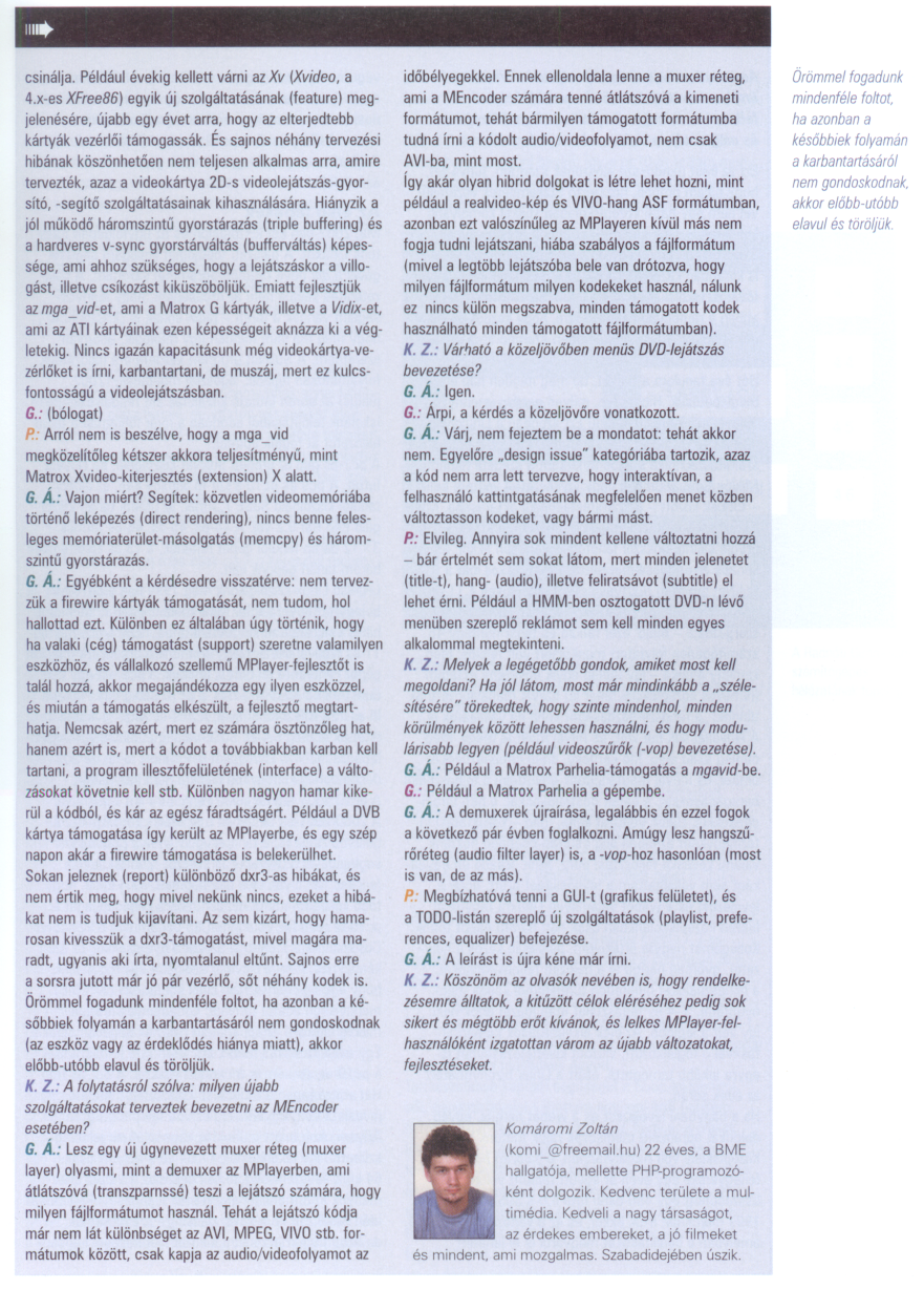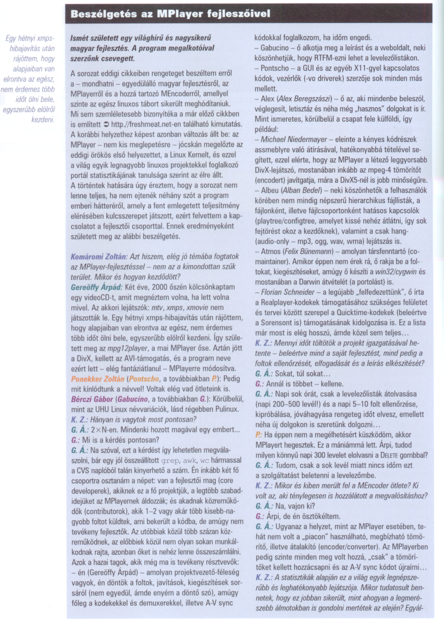 2002/03 Hungarian Linuxvilag Article about MPlayer (page 1, 2, 3, 4)